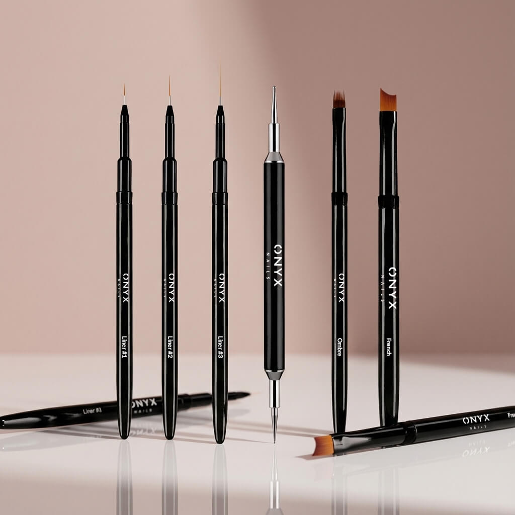 Τα πινέλα ONYX NAILS έχουν σχεδιαστεί για να προσφέρουν σταθερότητα στο χέρι και απόλυτο έλεγχο του υλικού. Κάθε πινέλο και εργαλείο ανταποκρίνεται στις απαιτήσεις της καθημερινής επαγγελματικής εργασίας, από το χτίσιμο έως το nail art και τις λεπτομέρειες.